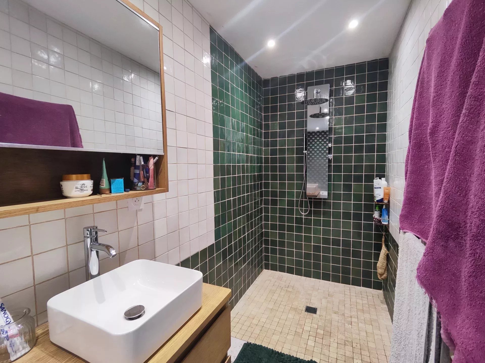 Au rez-de-chaussée, elle offre un vaste hall d'entrée avec de nombreux rangements, un séjour, une cuisine, une chambre avec dressing et salle de bains attenante, des toilettes séparées et une buanderie. Le premier étage comprend une mezzanine (pouvant servir de bureau), deux salles de bains, un dressing et une salle d'eau avec WC.